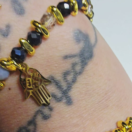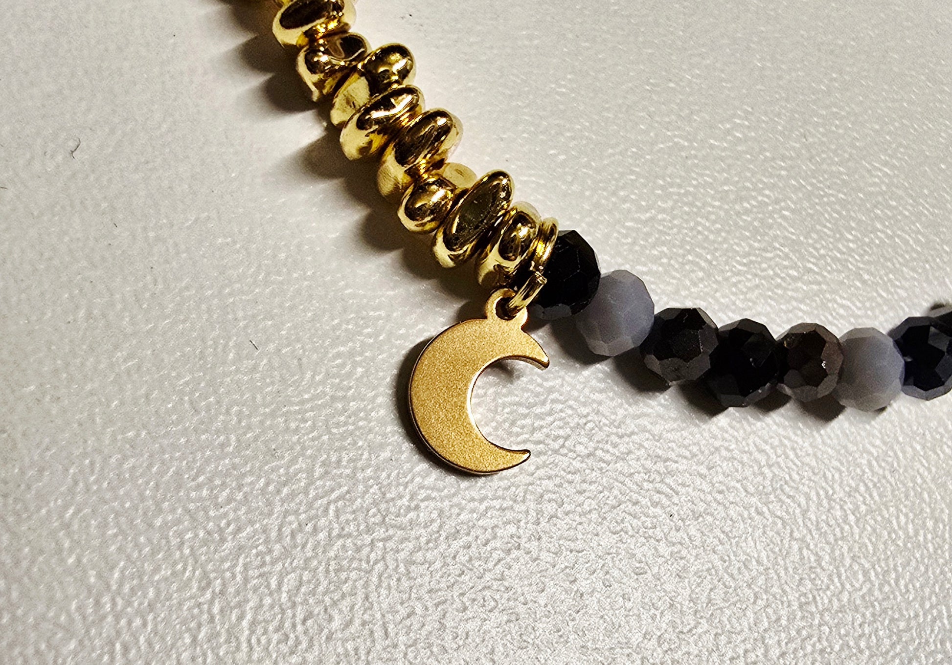 Der feine Edelstahlanhänger verleiht dieser Armkette den letzten, eleganten Schliff.
