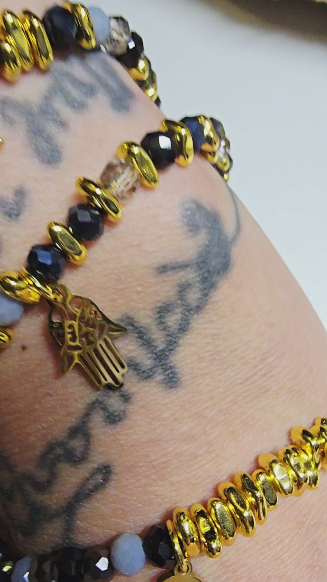 Die ungleichen Steine in Gold, im Zusammenspiel mit den facettierten Perlen. Diese Kombination ist ein Statement aber trotzdem nicht laut. Spürst du die Aussagekraft?
