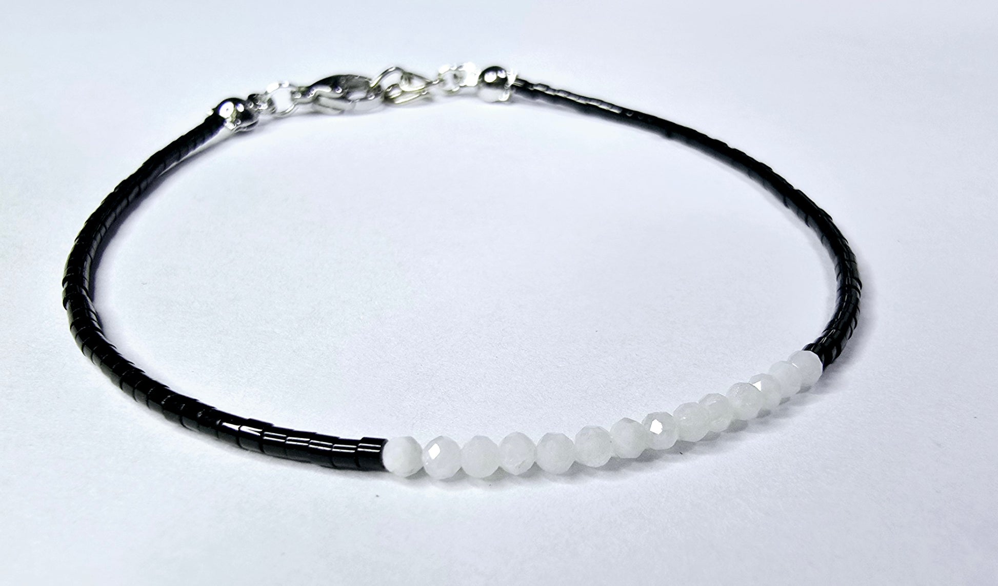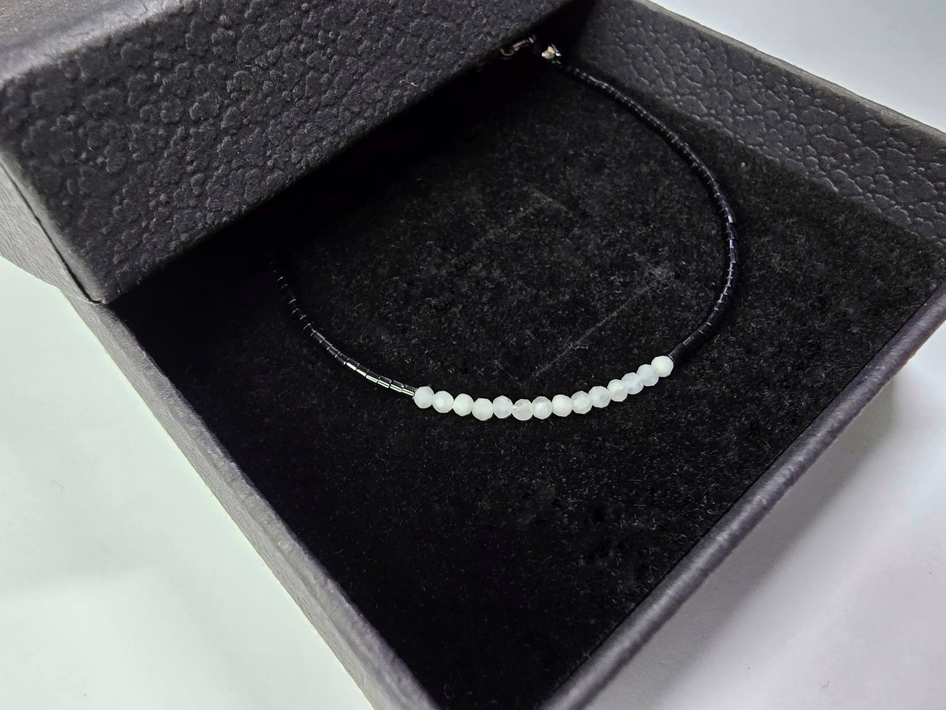 Die Fine-Design Linie hier in markantem Schwarz, kombiniert mit deinem Kraftstein. Die 2 mm feinen Perlen verleihen eine wunderschöne Zartheit, während die facettierten Steine in Kombination mit Schwarz ein echtes Statement setzen.