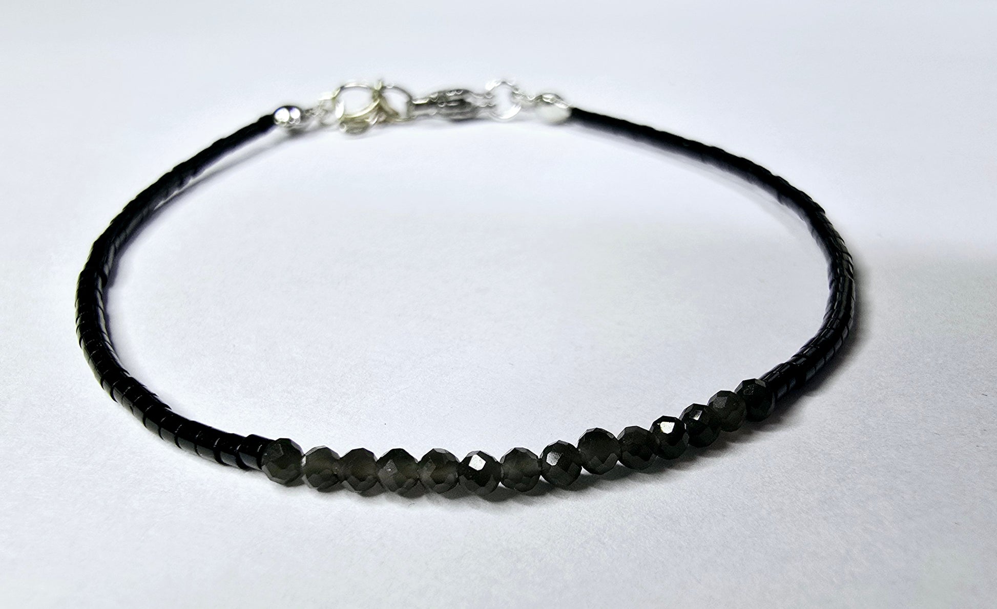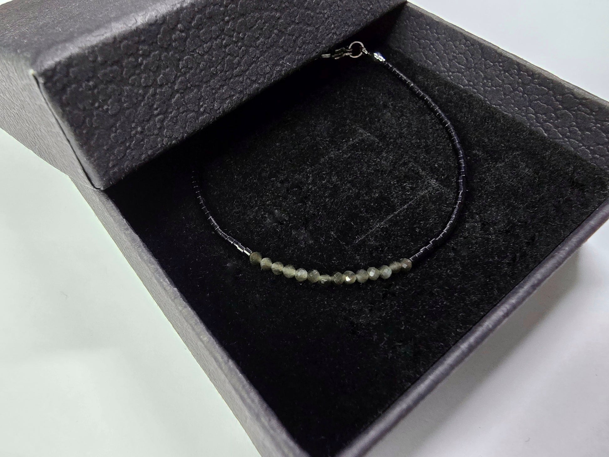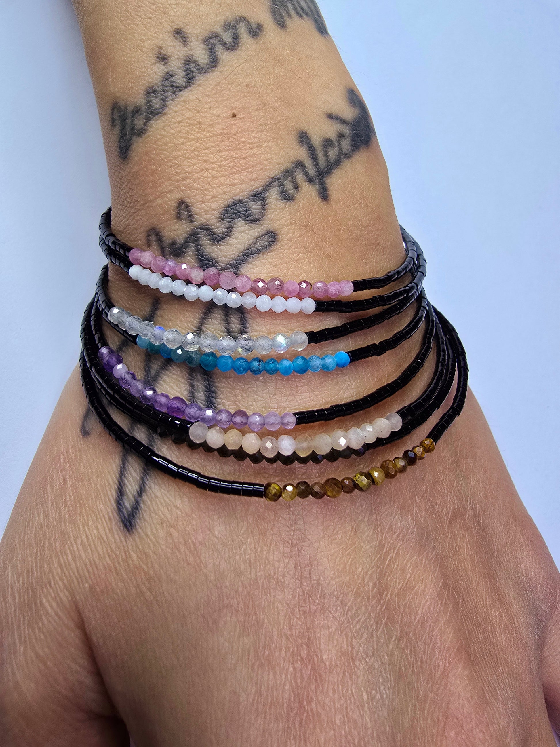 Die Fine-Design Linie hier in markantem Schwarz, kombiniert mit deinem Kraftstein. Die 2 mm feinen Perlen verleihen eine wunderschöne Zartheit, während die facettierten Steine in Kombination mit Schwarz ein echtes Statement setzen.