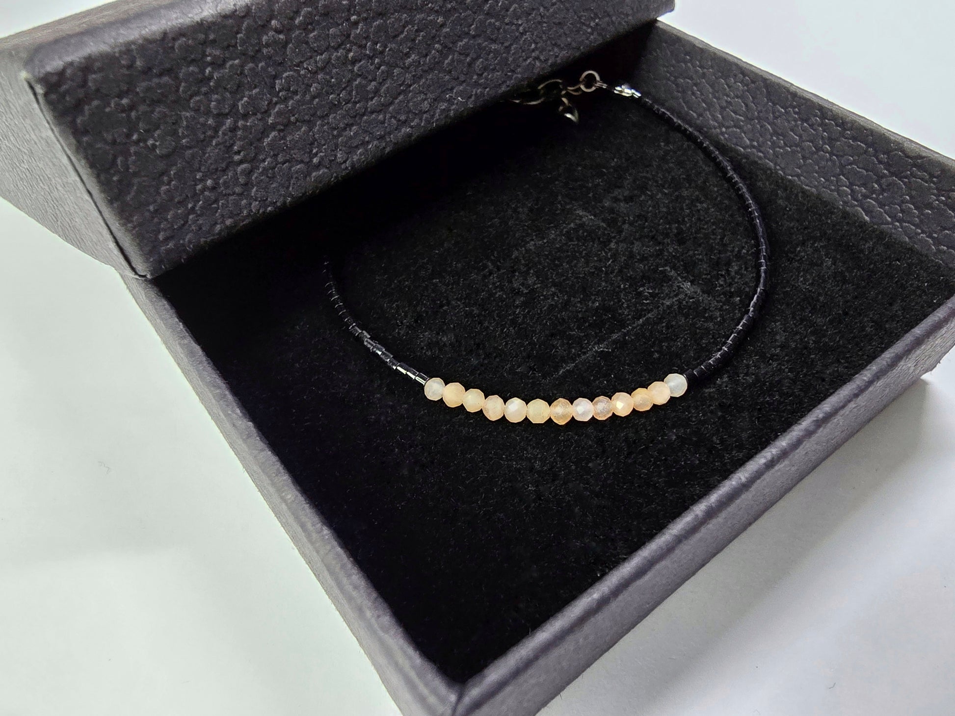 Die Fine-Design Linie hier in markantem Schwarz, kombiniert mit deinem Kraftstein. Die 2 mm feinen Perlen verleihen eine wunderschöne Zartheit, während die facettierten Steine in Kombination mit Schwarz ein echtes Statement setzen.