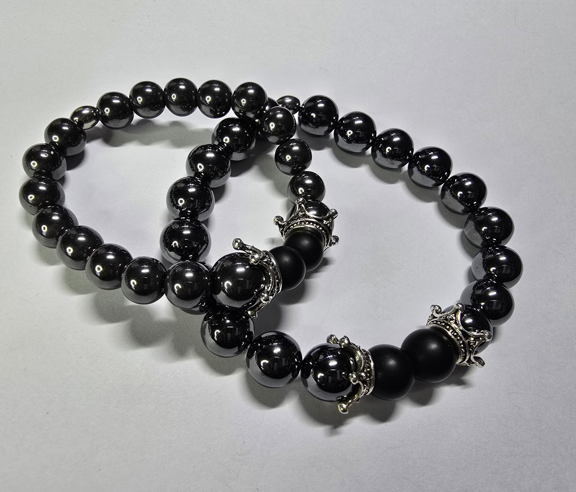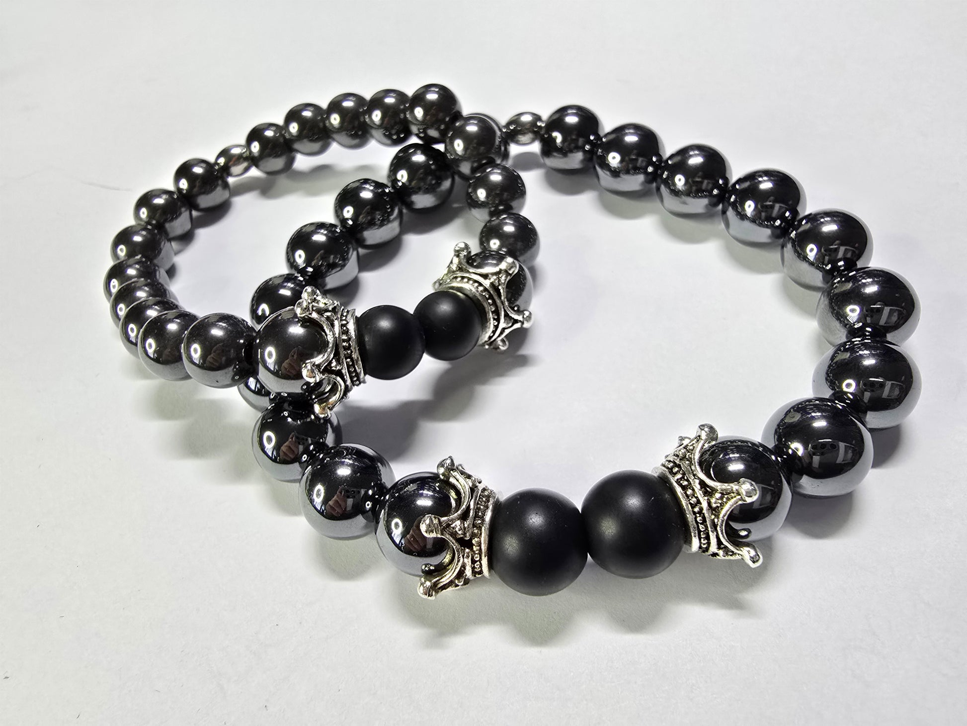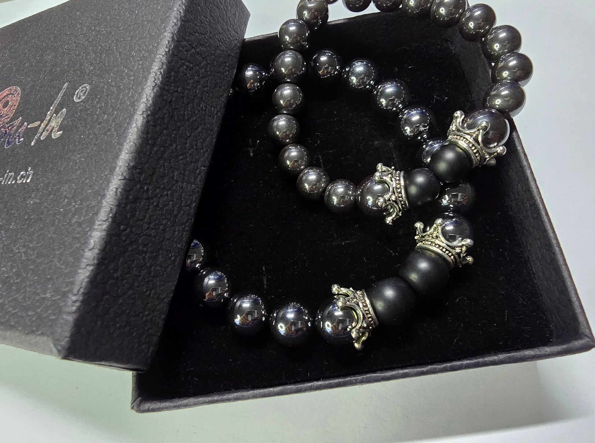 King & Queen? King & King? Queen & Queen? Mit diesen stylishen und zeitlosen Armketten seid ihr sowieso die Könige im stylen. Der wunderschöne Hämatit und die matten Onyx, sind eine Kombination die zu jedem Style passt. Die beiden Kronen verleihen den letzten Schliff und sind ein Statement für beide ♡