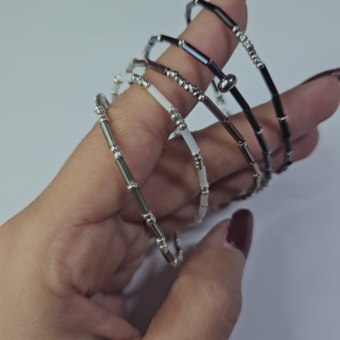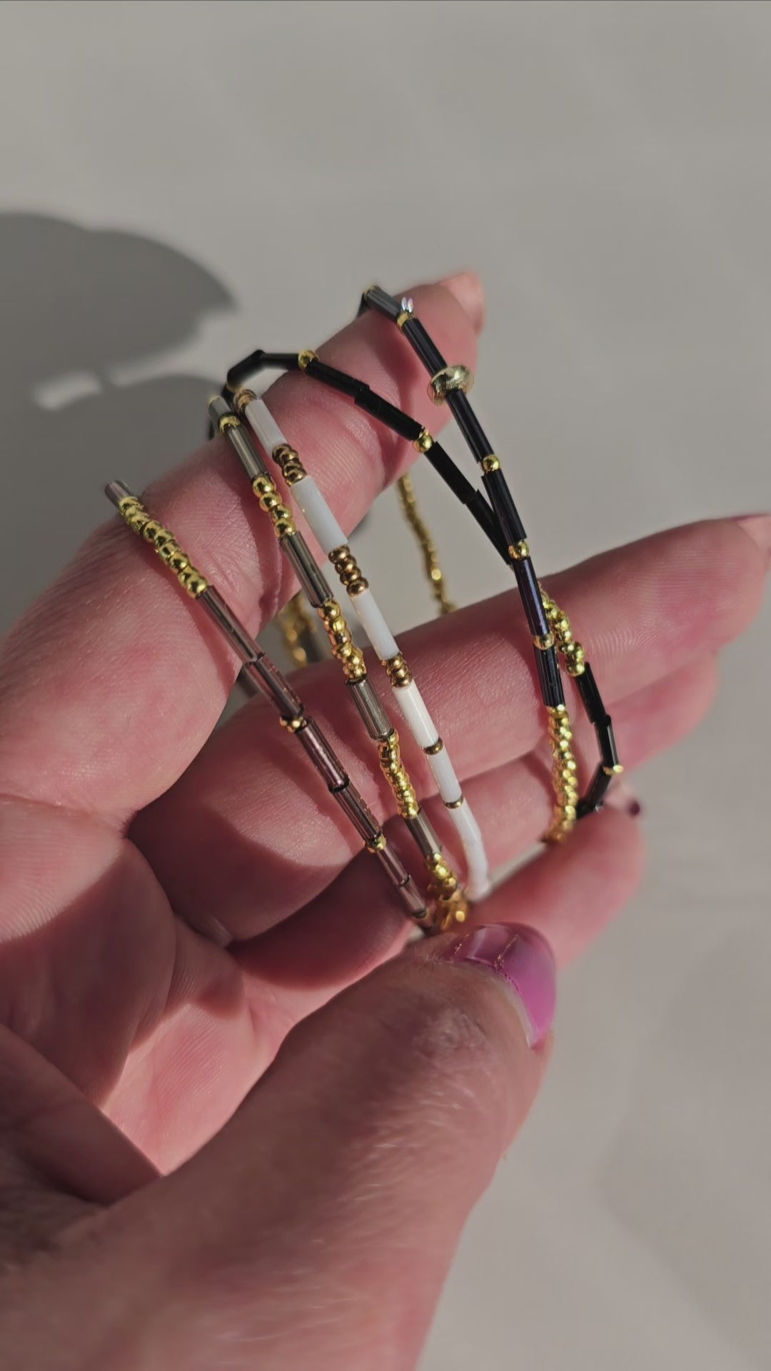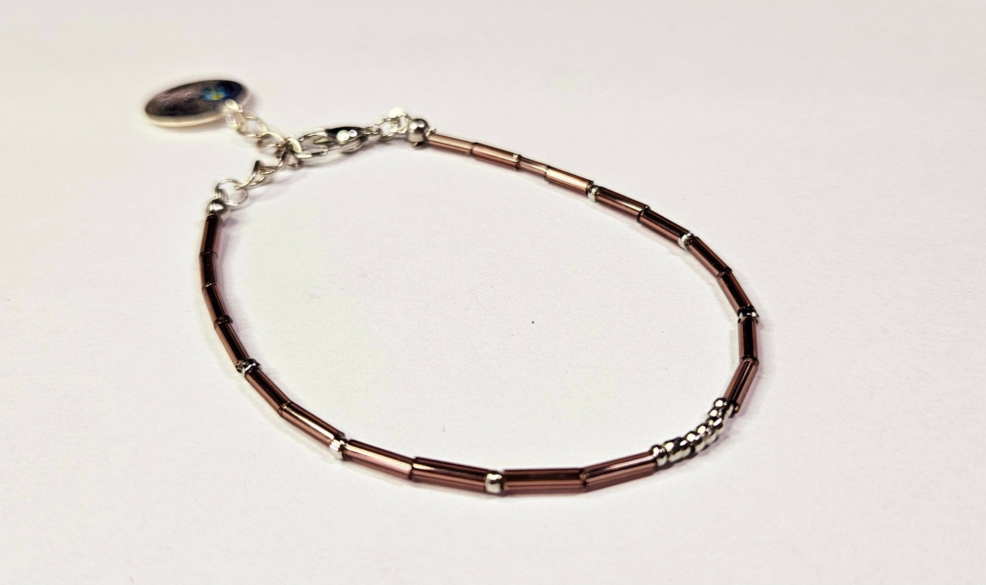 Die feine Armkette aus 2mm Glasperlen in länglicher Form in Kupfer, sorgt für ein elegantes und zeitloses Auftreten. Ein Must-Have für alle die es dezent mögen.