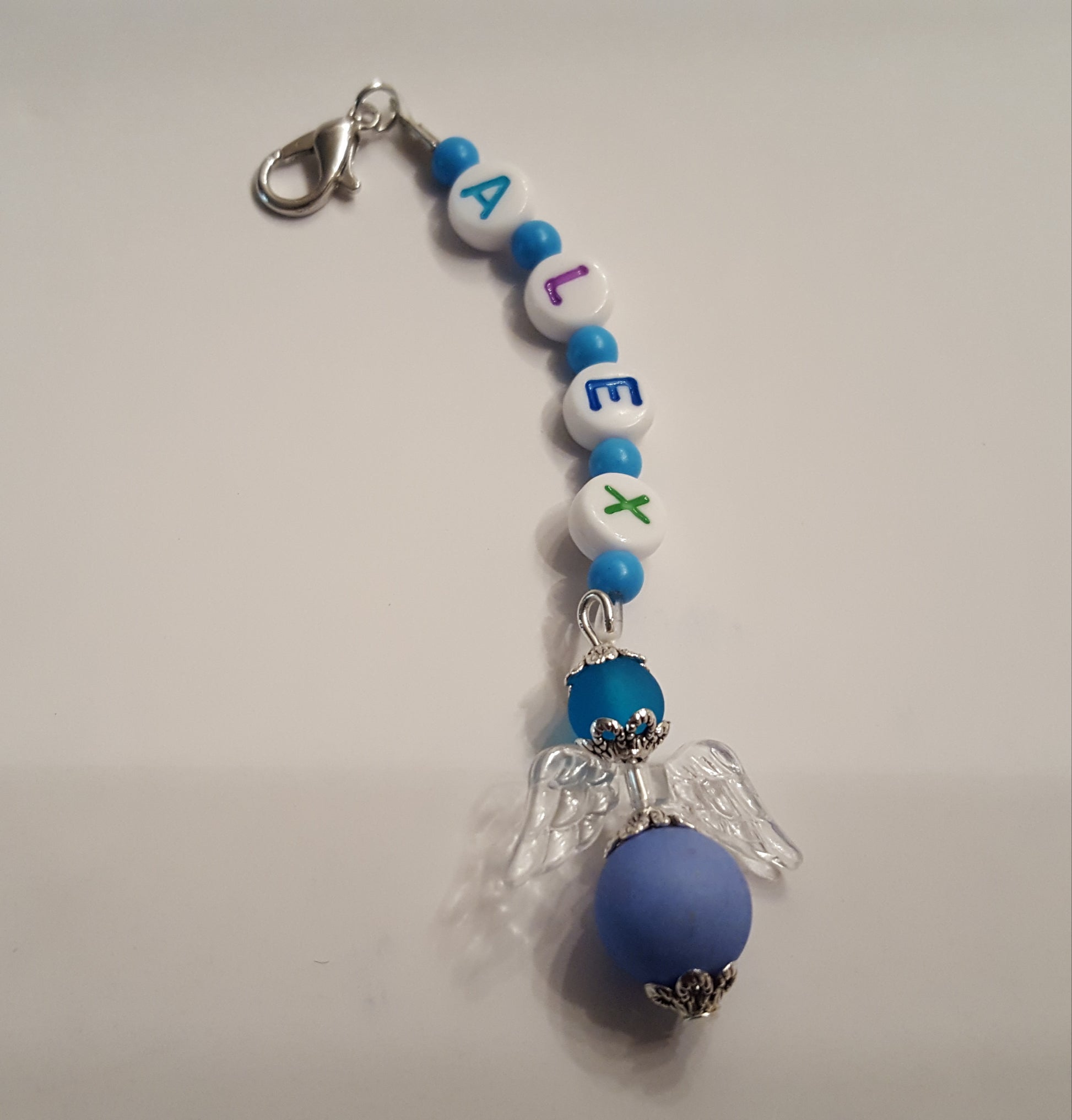 Süsse, personalisierte Anhänger in Neonfarben für die Kids. An der Schultheke, am Etui oder dem Hausschlüssel. Das Engelchen ist ausserdem ein süsser Begleiter.